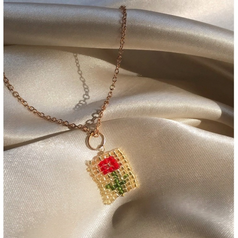 Discover this delicate beaded floral pendant necklace with a charming red flower design on a fine gold chain. Perfect for teens and women, this stylish and modern accessory adds a cute, elegant touch to any casual or chic outfit. Shop now!