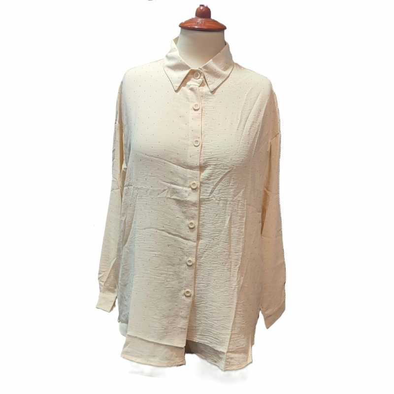 This button-up shirt is designed for those who appreciate subtle elegance. It features a sleek and simple cut, enhanced by a shimmering dot pattern that adds a touch of sophistication. The lightweight fabric ensures all-day comfort, making it a versatile choice for both casual and semi-formal wear. Perfect for pairing with your favorite jeans or trousers, this shirt effortlessly blends style with functionality. Available in various sizes for a flawless fit. Add a dash of sparkle to your wardrobe with this timeless piece.