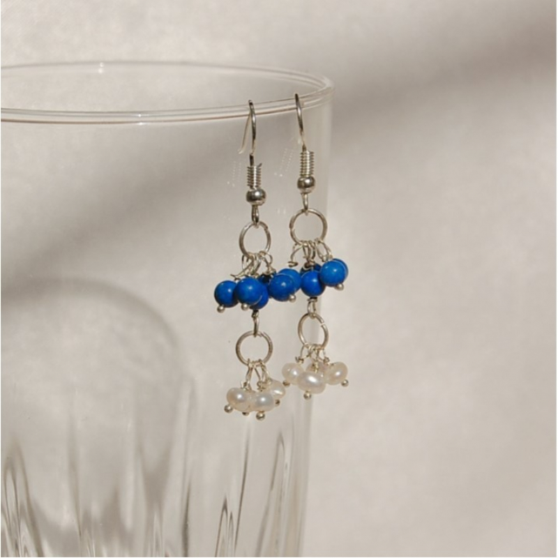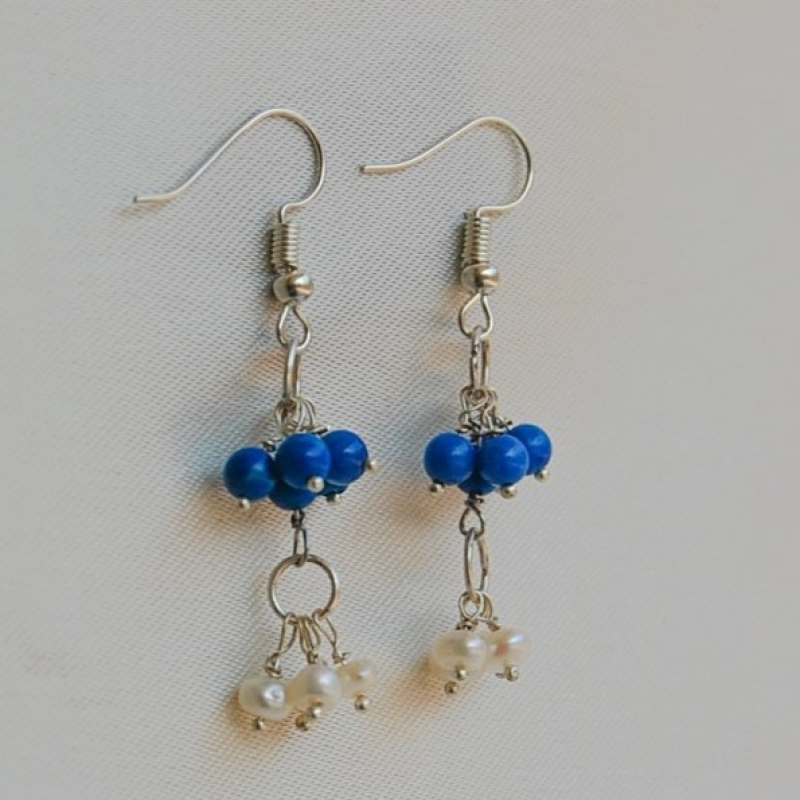 Elevate your style with these handcrafted earrings featuring striking blue beads and delicate freshwater pearls. The dangle design, accented with silver hooks, adds a touch of elegance to any outfit, whether casual or formal. Lightweight and comfortable, these earrings are the perfect accessory for everyday wear or special occasions. Handmade with care, they blend simplicity and charm effortlessly. Get yours now to add a splash of color to your jewelry collection!