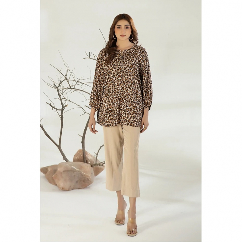 Add a bold flair to your wardrobe with this relaxed-fit baggy linen shirt, featuring a cheetah print and a golden zip with beaded details on the front. The cuffed sleeves, accented with loops, bring a refined yet casual touch, making it effortlessly chic for any day.