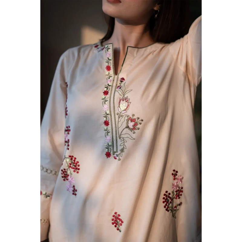 Shirt: Self Cotton Lawn embroidered