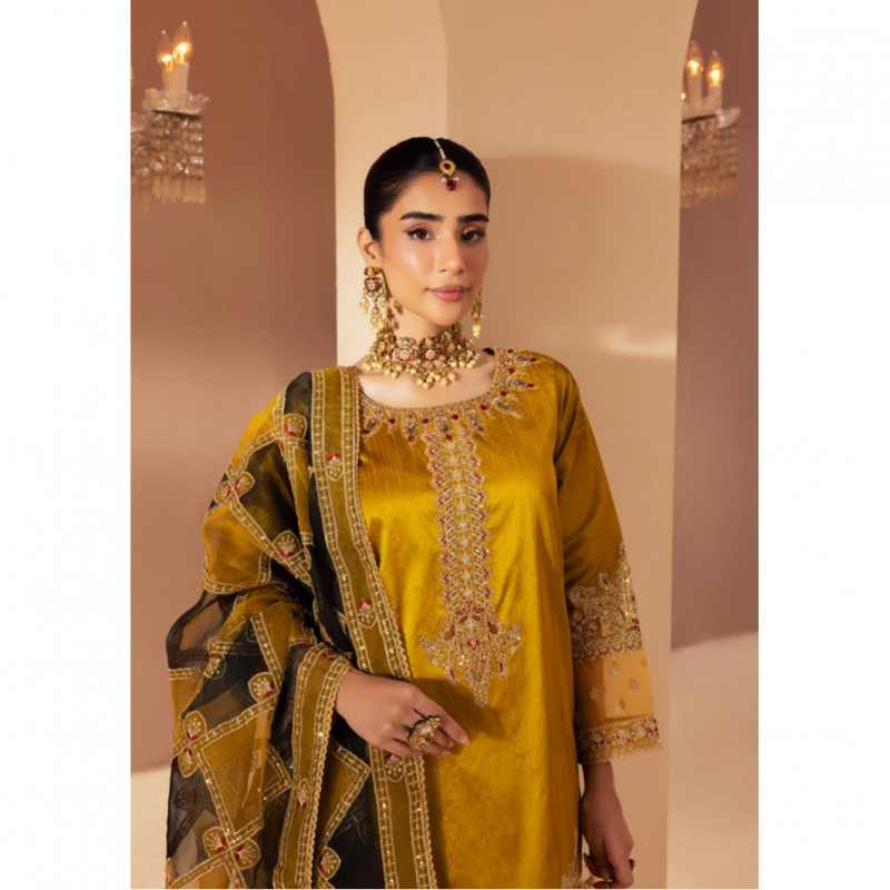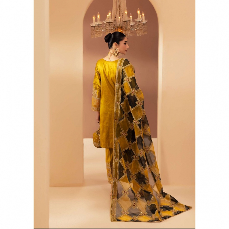 • ORGANZA EMBROIDERED NECK WITH HANDMADE WORK