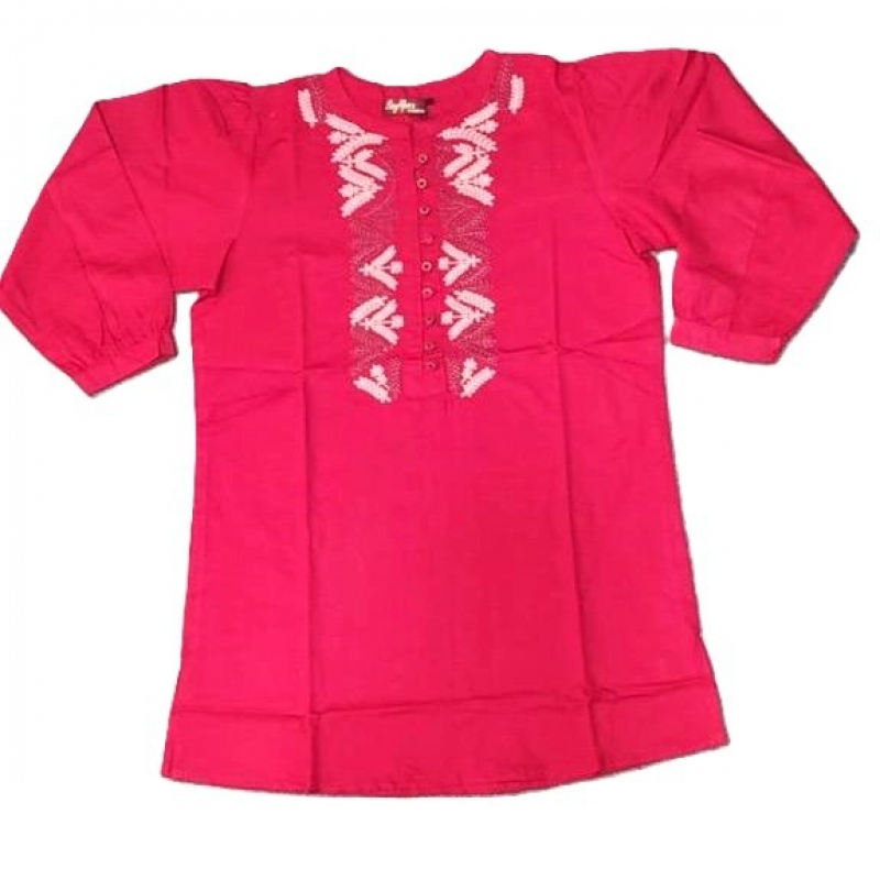 یہ شوخ کرتا سامنے کے حصے پر نفیس سفید کڑھائی کے ساتھ دلکش انداز پیش کرتا ہے۔ اس کے پف آستینیں اسے مزید جاذبِ نظر بناتی ہیں، جبکہ بٹنوں کی نفاست اس کی دلکشی کو بڑھاتی ہے۔ اعلیٰ معیار کے کپڑے سے تیار کردہ یہ کرتا آرام دہ اور خوبصورت ہے، جو اسے روزمرہ اور تقریبات کے لیے موزوں بناتا ہے۔
