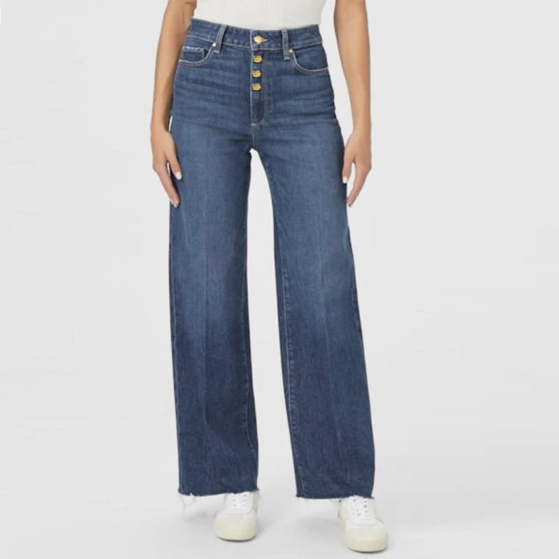 یہ ایک اونچی کمر، چوڑی پائینچوں والی نیلی جینز ہے جس کے کنارے کچے (را ہیم) ہیں۔ جینز میں کلاسک پانچ جیبیں شامل ہیں: دو سامنے کی جیبیں، دو پچھلی جیبیں، اور ایک کوائن جیب۔ اس کا فٹ آرام دہ ہے اور ٹانگوں پر سیدھا اور ہلکا ڈھیلا انداز دیتی ہے جو کمر سے لے کر نیچے تک جاتا ہے۔ یہ جینز آرام دہ اور کیژول ہیں، جنہیں مختلف ٹاپس اور جوتوں کے ساتھ پہنا جا سکتا ہے۔