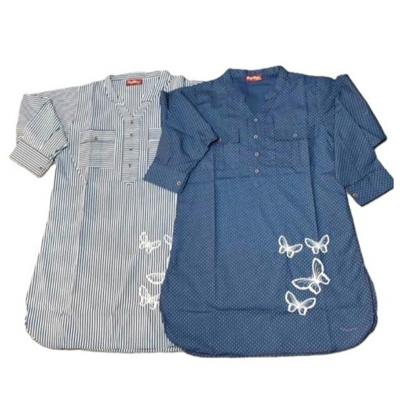 یہ سیٹ دو خوبصورت کیزول کُرتوں پر مشتمل ہے جو روزمرہ استعمال کے لیے بہترین ہیں۔ پہلا کرتا عمودی دھاری دار ڈیزائن کے ساتھ نچلے حصے پر نفیس تتلیوں کی کڑھائی رکھتا ہے، جبکہ دوسرا کرتا پولکا ڈاٹ ڈیزائن اور دامن پر دلکش تتلیوں کے نقش و نگار کے ساتھ خوبصورتی پیش کرتا ہے۔ دونوں کُرتوں میں آرام دہ نصف آستینیں اور بٹنوں کی تفصیل موجود ہے، جو اسے سادہ مگر اسٹائلش بناتی ہیں۔ سانس لینے کے قابل کپڑے سے تیار کردہ یہ کُرتے روزمرہ اور غیر رسمی مواقع کے لیے بہترین ہیں